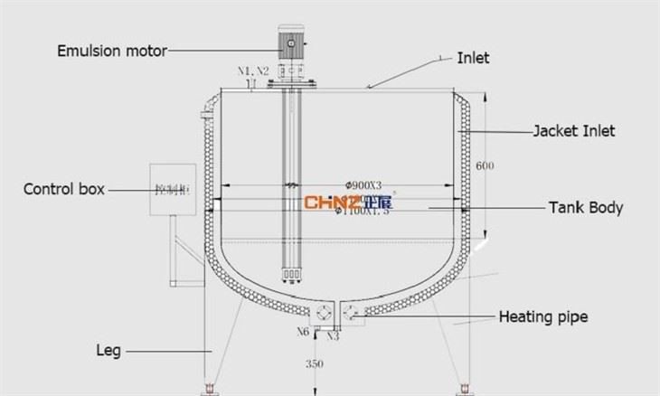 Emulsification tank is used to mix one or several materials (water solublesolid, liquid or jelly) with other liquid and then to hydrate it into Emulsionliquid.Chinz homogenization agitator can apply together with Center blade agitator and scraped suface agitatot.