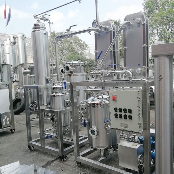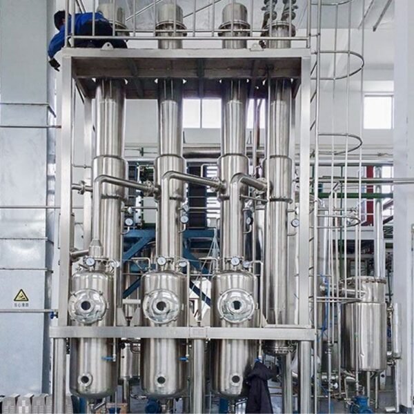 Falling film evaporator is a reduced-pressure distillation unit for concentrating liquid. The liquid to be vaporized is sprayed onto the heat exchange tube from the upper heat exchanger, and a thin liquid film is formed on the heat exchange tube. In this way, the static liquid level pressure is reduced when the liquid is boiling and evaporating, so as to improve the heat exchange and evaporation efficiency. It is commonly used in food, medical, chemical and other related industries. The working principle of the single-effect falling film evaporator: the feed liquid is added from the upper tube box of the heating chamber of the falling film evaporator, and is evenly distributed into each heat exchange tube through the liquid distribution and film forming device. The inner wall of the heat pipe flows down in the form of a uniform film. In the process of flowing down, it is heated and vaporized by the heating medium on the shell side, and the generated vapor and the liquid phase enter the separation chamber of the evaporator together. After the vapor and liquid are fully separated, the vapor enters the condenser for condensation.